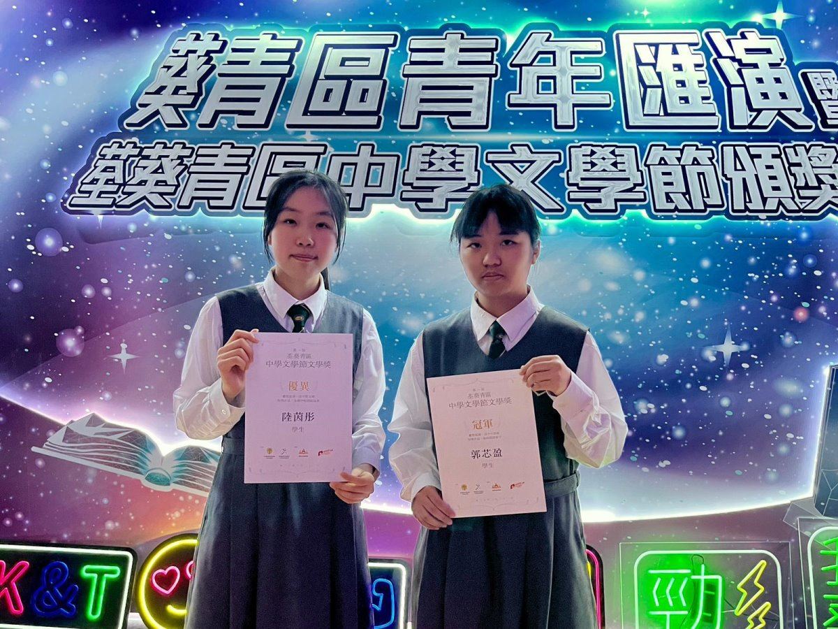Our students participated in the Tsuen Wan - Kwai Tsing District Inter-school Literary Awards. Kwok Sum Ying (5C) was awarded the Championship in the Senior Secondary Novel Category, and Loh Yan Tung (5A) won a Merit in the Senior Secondary Prose Category.
